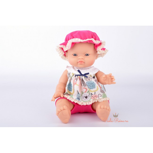Одета в платьице из хлопкового материала, штанишки и панамку.