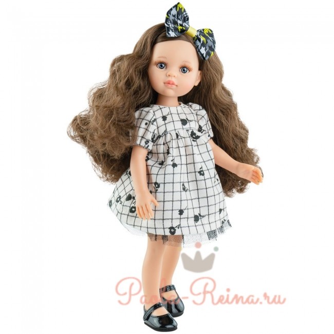 Знакомьтесь – Ана Белен! У неё роскошные длинные кудрявые волосы цвета темного шоколада. От её серых бездонных глаз невозможно оторваться. А какое милое черно-белое платье в клетку с цветочками и гипюровым подъюбником! Чёрные лакированые туфельки на липучке отлично подходят к нему. И завершает красивый бант на голове. Кэрол станет отличной подружкой для вашего ребенка!