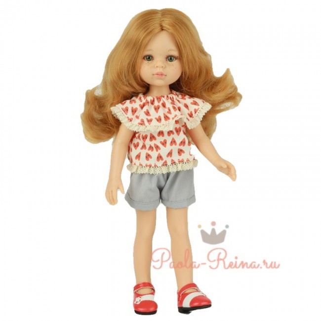 У куклы Даши красивые объемные, завивающиеся волосы, русого цвета с медовым оттенком. На лице озоные веснушки и зеленые красивые глаза.
